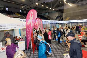 Seit 2009 setzt sich der Frauenlauf Salzburg gemeinsam mit der Österreichischen Krebshilfe Salzburg für mehr Bewegung und die Krebsvorsorge bei Frauen ein. Der Lauf betont die Bedeutung regelmäßiger Bewegung als Präventivmaßnahme, um das Risiko schwerer Erkrankungen wie Brustkrebs zu senken. Dabei geht es nicht um sportliche Höchstleistungen, sondern um die Förderung eines aktiven Lebensstils und die Unterstützung von Frauen in ihrer Gesundheit. Auch in diesem Jahr waren wir wieder mit unserem Infostand vor Ort vertreten und informierten auf der SPORTSMALL (Sportmesse der Lauffestspiele) über Krebsprävention. Am Stand der Krebshilfe konnte auch bei einem Charityglücksrad der Casinos Austria gespendet werden. Vielen Dank an das Casino Salzburg für die großartige Hilfe und Unterstützung. Und danke auch an alle, die gespendet haben. Beim gestrigen Frauenlauf waren insgesamt rund 1.500 sportbegeisterte Frauen dabei, laufen und walkend.