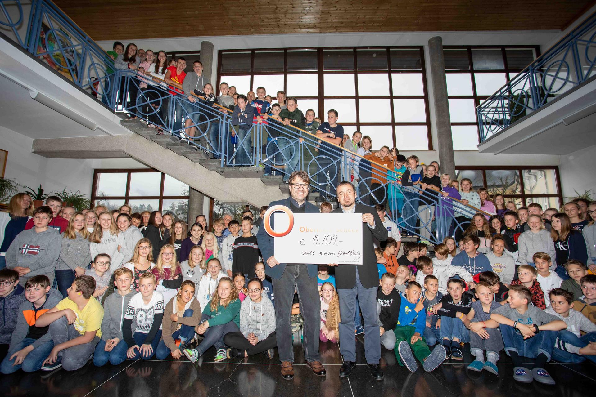 Dank vieler großzügiger Spenden und sportlichen Schülerinnen und Schülern, wurde an diesem Vormittag ein Betrag von rund 15.000.- € für die Österreichischen Krebshilfe Salzburg „erlaufen“. Direktor Gernot Prelog übergab im Beisein des Lehrer-Kollegiums und vieler Schülerinnen und Schüler den großen Scheck an Krebshilfe Geschäftsführer Stephan Spiegel.„Ich bedanke mich ganz herzlich für diese gewaltige Summe, mit der wir wieder vielen an Krebs erkrankten Menschen und ihren Familien helfen können. Ich bin überwältigt von diesem Ergebnis und freue mich, dass bei der Hoffnungsrunde in Strobl so viele junge Menschen so aktiv und mit Spaß dabei waren“, freut sich Spiegel.