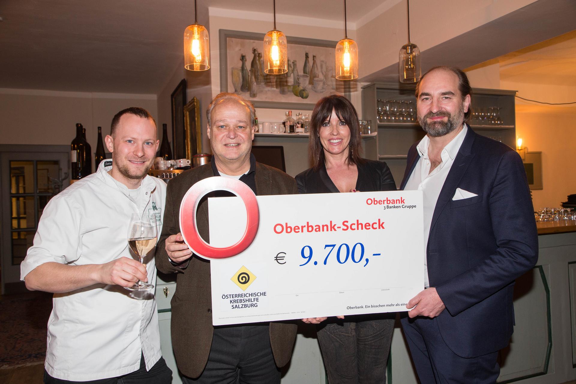 Kürzlich fand im Gasthaus "Schloss Aigen" in Salzburg ein gemeinsames Abendessen von Unterstützern des "Adventzauber 2017" statt. Im Rahmen dieses Abends wurde von Petra und Dr. Jörg Dabernig sowie Gastgeber Kurt Berger ein Spendenscheck über 9.700 Euro an Krebshilfe Präsidenten Univ.-Doz. DDr. Anton-H. Graf übergeben. Wir sagen ganz herzlich DANKE für die stolze Summe und die große Mühe. Und wir freuen uns heute schon sehr auf den nächsten gemeinsamen Adventzauber 2018!