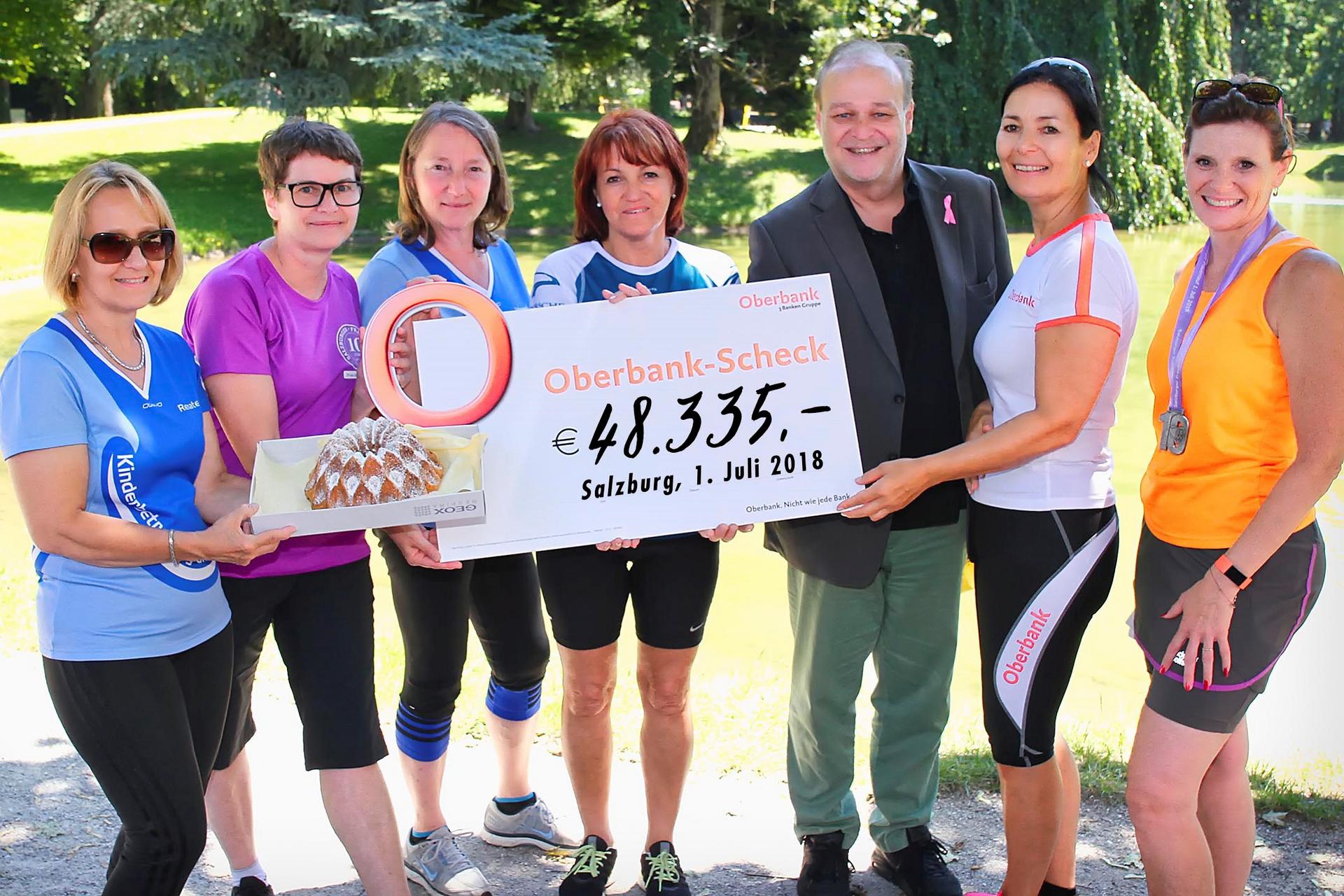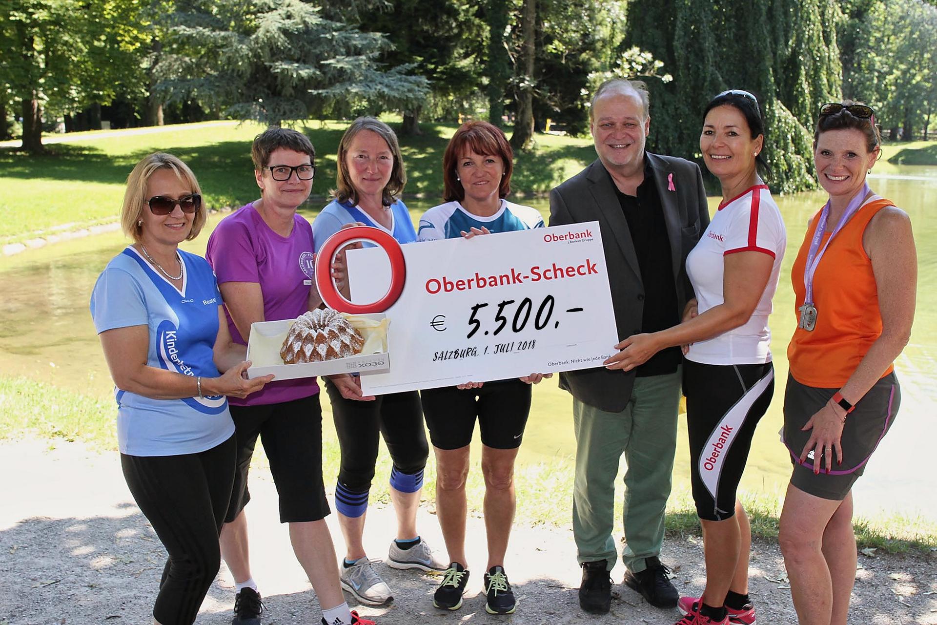 Veranstalterin Ruth Langer, die 1 Euro pro Finisherin spendete, freut sich sehr über die beachtliche Summe. Die 5.500 Euro errechnen sich aus der Spende der Veranstalterin, aus Direktspenden der Teilnehmerinnen, aus dem Gesamterlös des Tombola-Losverkaufs und aus dem Verkauf des Kuchens durch das Tages-Eltern-Zentrum (TEZ). Außerdem steuerten zahlreiche Partner des Salzburger Frauenlauf wie der Porsche-Betriebsrat, die Oberbank, Wüstenrot sowie das English-Center und die Gastronomie-Anbieter am Eventtag einen Spendenbeitrag bei.