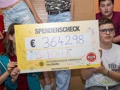 30.06.2025 Großer Scheck der MS Parsch Schülerinnen und Schüler der MS Parsch sammelten wieder erfolgreich für die Krebshilfe Salzburg. Stolze 5.419 Euro waren es am Ende, die an die Krebshilfe übergeben werden konnten.