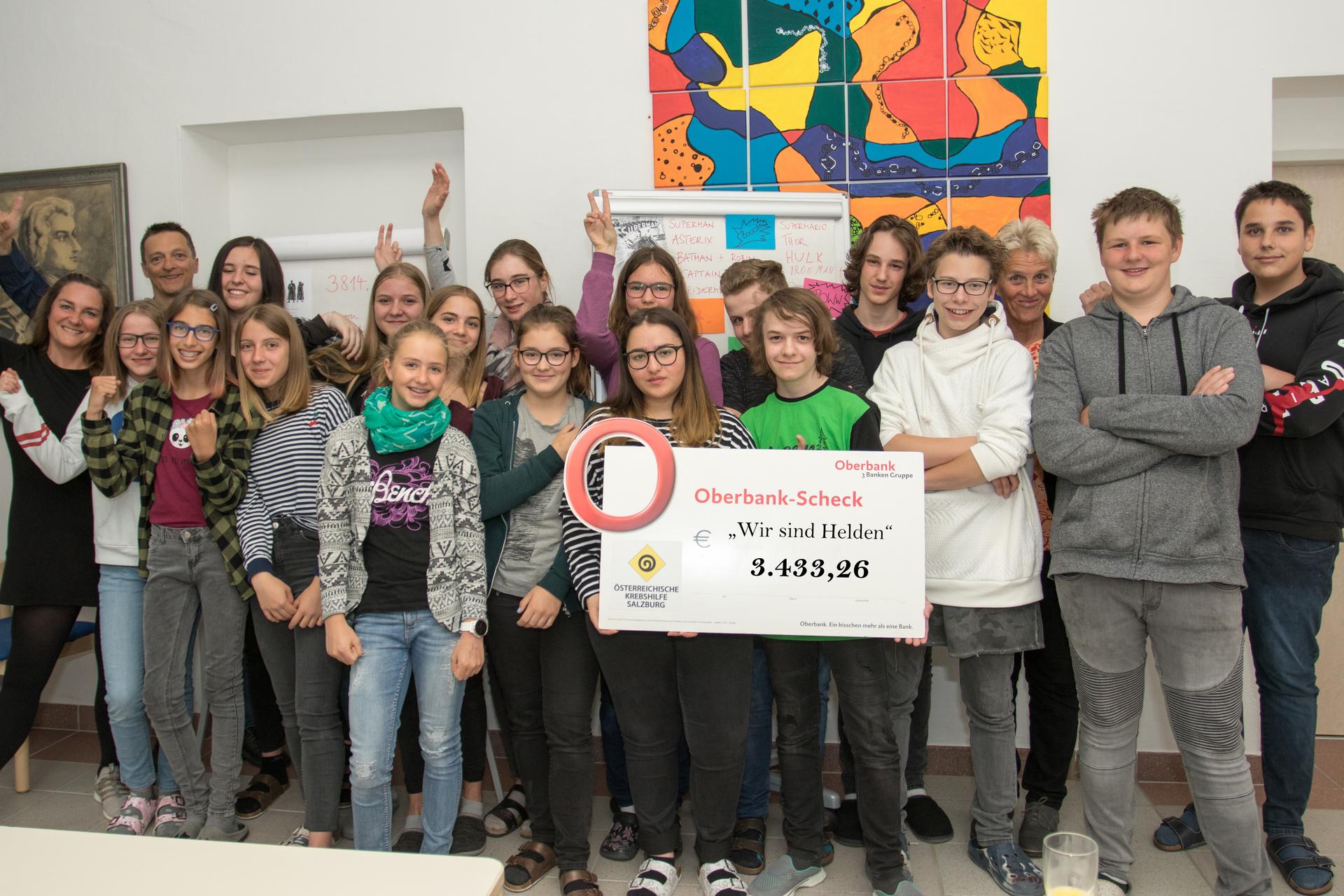 Wie in jedem Jahr, so findet auch heuer wieder die große Straßensammlung der Österreichischen Krebshilfe statt. Unter dem Motto „Wir sind Helden“ sammelten kürzlich auch 19 Schülerinnen und Schüler der NMS Saalfelden Stadt unglaubliche 3.433,26 Euro für den guten Zweck! „Wir sind sehr glücklich darüber, dass sich so viele junge Menschen helfend für andere einsetzen. Ohne diese Hilfe könnten wir nicht helfen. Ich möchte allen von ganzem Herzen DANKE sagen, die mitgeholfen und gesammelt haben. Aber auch allen Spenderinnen und Spendern gebührt unser Dank. Sie gemeinsam haben dieses wunderbare Spendenergebnis möglich gemacht.