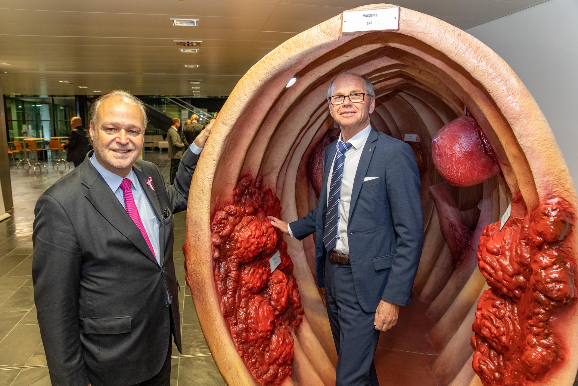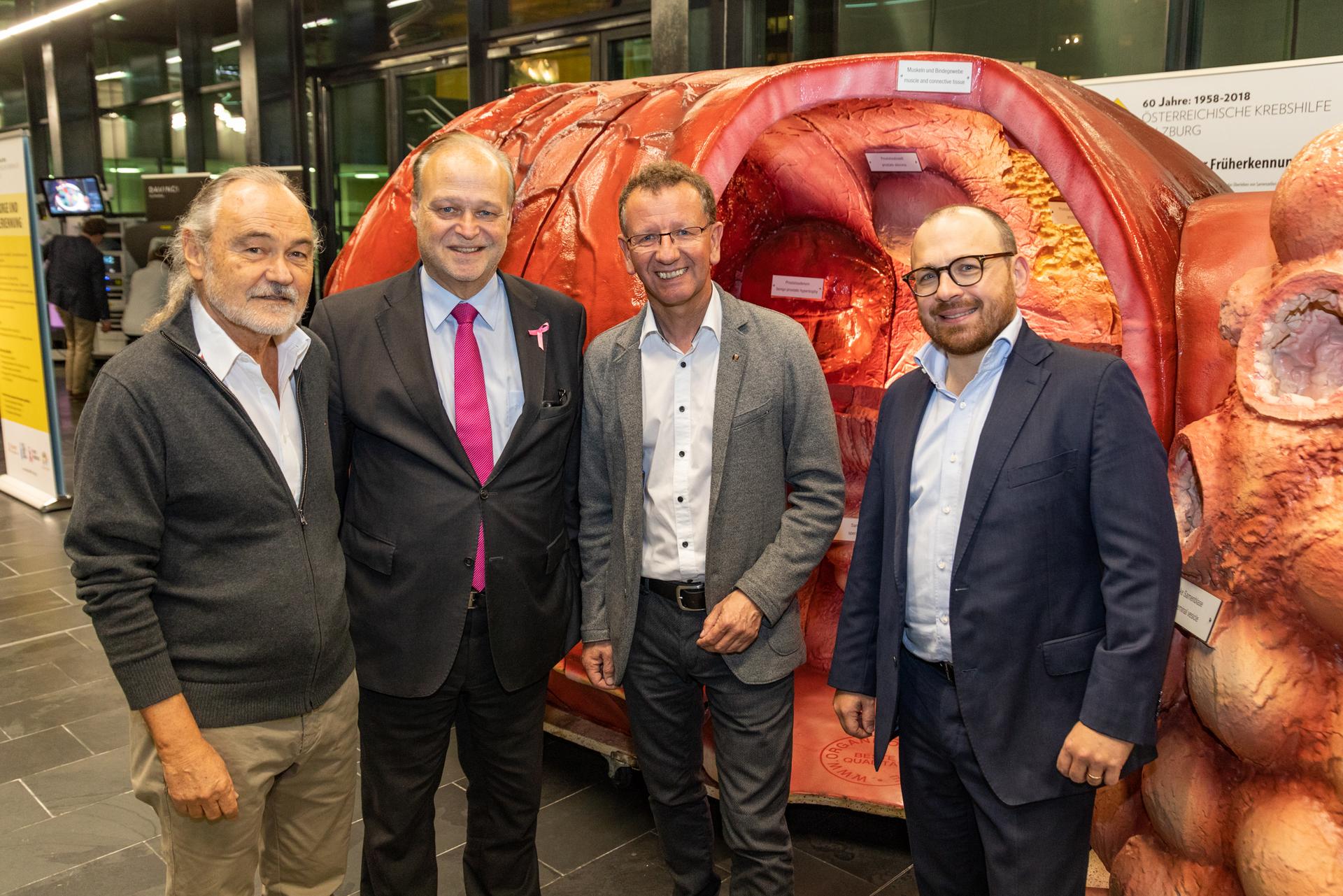Mit begehbaren Organmodellen des Darms und der Prostata informierte die Krebshilfe Salzburg am 4. und 5.11.2019 im Tauernklinikum Zell am See über die richtige Krebsvorsorge für den Mann. Die zahlreichen Besucher des Tauernklinikums Zell am See waren im Foyer sofort beeindruckt, sich zwischen den Primaren der Urologie Stephan Hruby und der Allgemeinchirurgie Kai-Uwe Asche, dem Krebshilfeteam rund um Geschäftsführer Stephan Spiegel zwischen begehbarer Prostata und Darm sowie dem DaVinci Operationsroboter zu bewegen und viele Fragen zu stellen. „Damit war das Ziel ‚Aufmerksam zu machen und auf Möglichkeiten der Prävention, Früherkennung aber auch der schonenden Behandlung von Krebserkrankungen bei Männern‘ mehr als erreicht. Wir sind sehr froh, dass sich so viele Menschen vor Ort informiert haben und unsere Informationstage besucht haben“, so Spiegel.