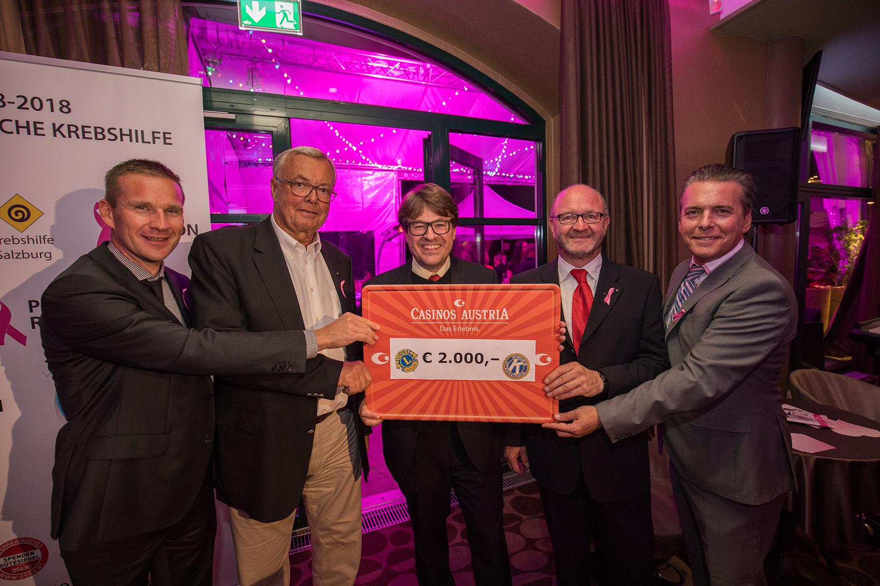 Am 23. September 2017 wurde im Casino Zell am See ein Abend für das Leben gefeiert. Anlass war das 25 Jahr Jubiläum der Krebshilfe Aktion „PINK RIBBON“. Zum Abend eingeladen hatte das Casino Zell am See. Direktor Paul Vogel freute sich über mehr als 300 Gäste die der Einladung gefolgt sind und gemeinsam mit der Krebshilfe diesen Abend genossen haben. Ein besonderes Highlight war auch die pinke Beleuchtung des Grand Hotel Zell am See. Ein weithin sichtbares Zeichen der Solidarität.